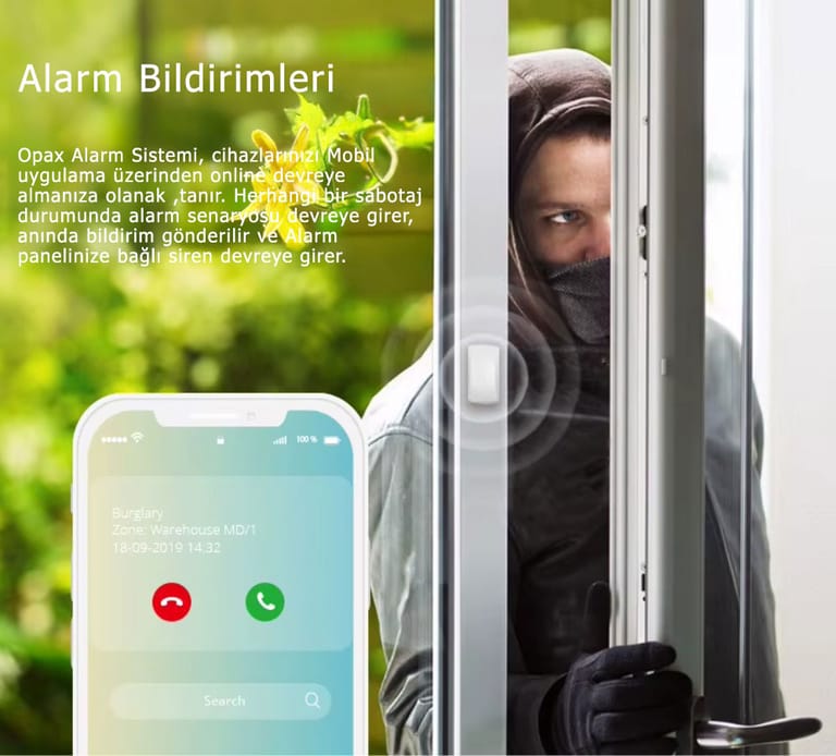 Pencere veya kapınız siz evde yokken zorla açıldığında, alarm sistemi anında devreye girer. ARD-2005 sensöründen gelen sinyal ile alarm paneli, mobil uygulamanıza anında sesli arama veya bildirim göndererek sizi saniyeler içinde durumdan haberdar eder. Bu sayede anında müdahale edebilir veya güvenlik güçlerini yönlendirebilirsiniz.